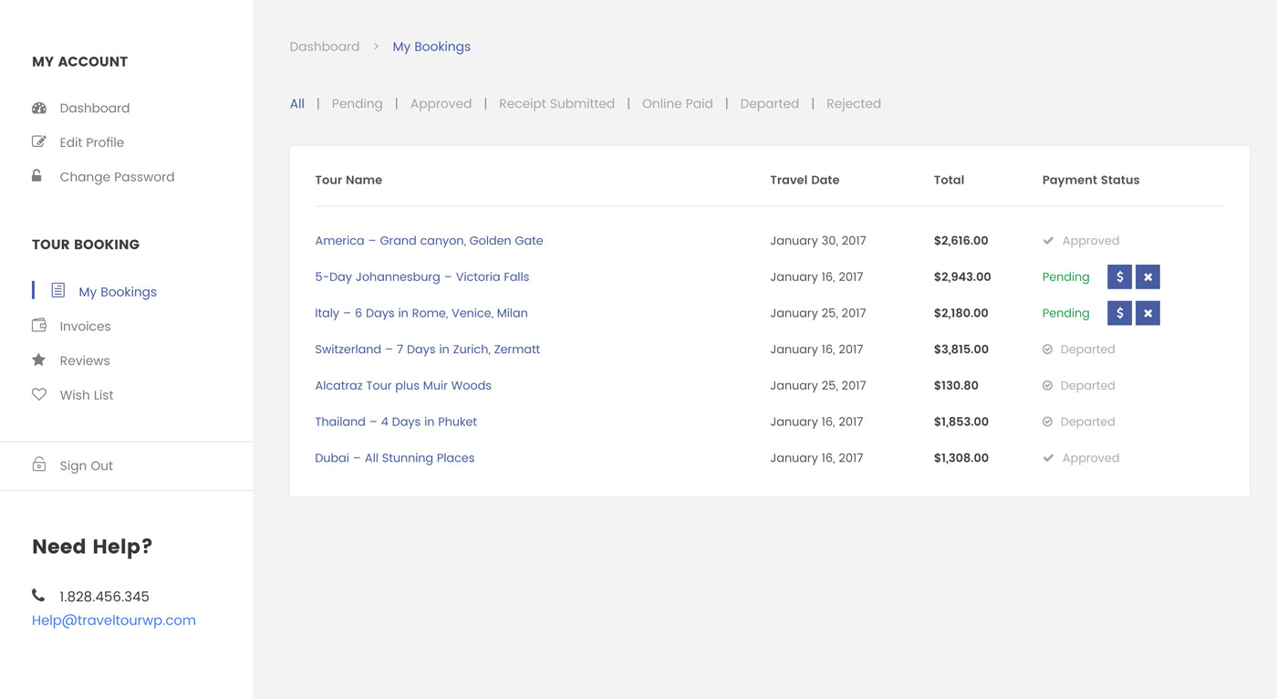 Tours – Sidebar Filter